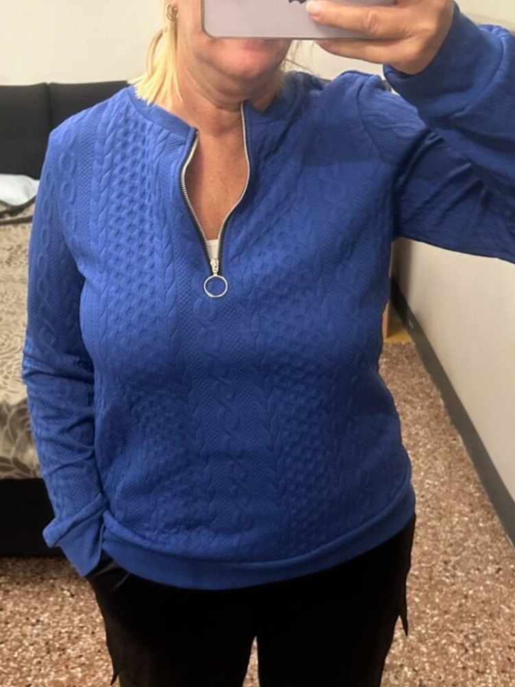 Lovely and warm without being bulky. Easy to zip up and down, great for layering.