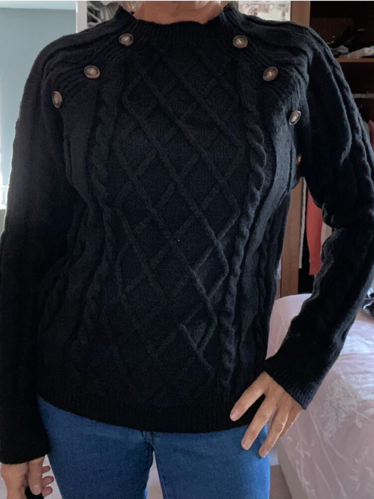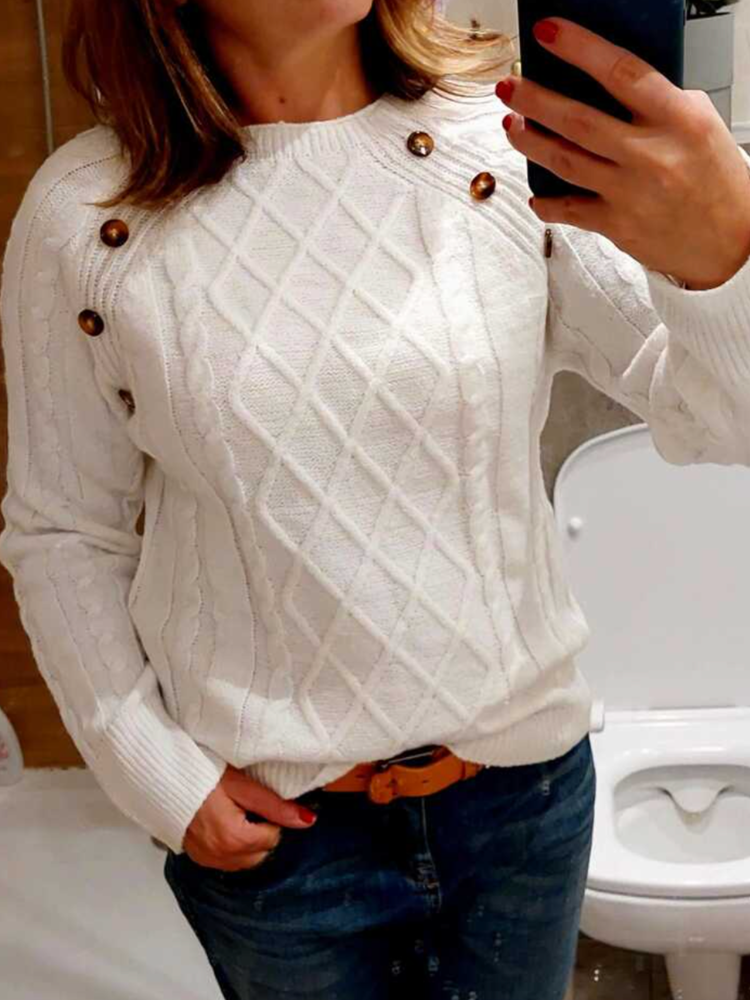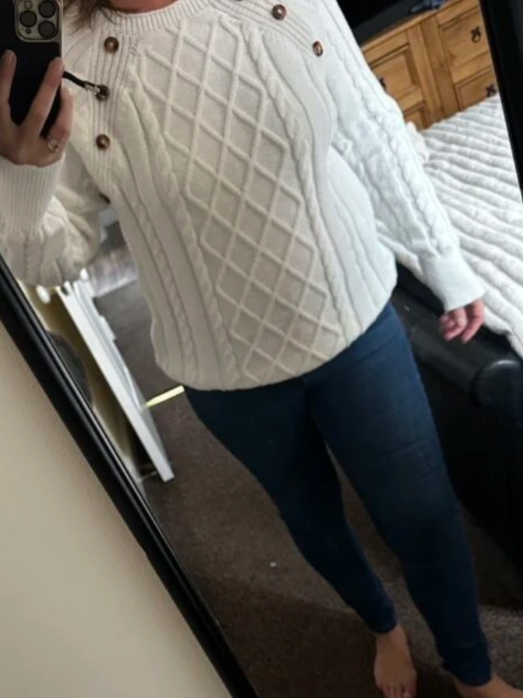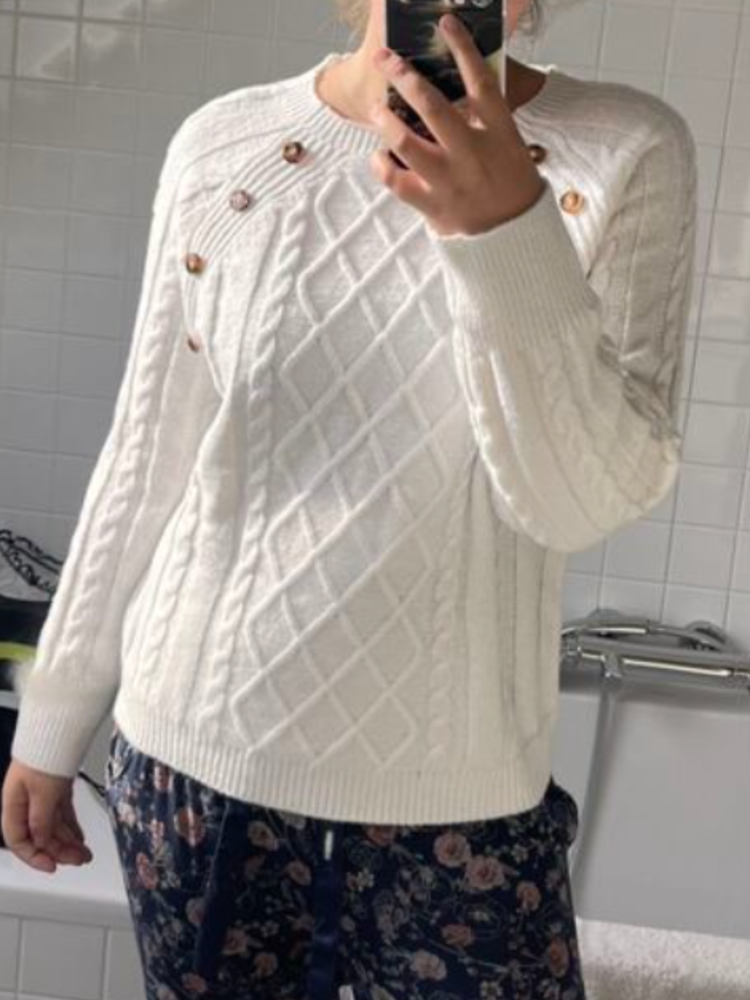 Clara – Button-Detail Cable-Knit Jumper