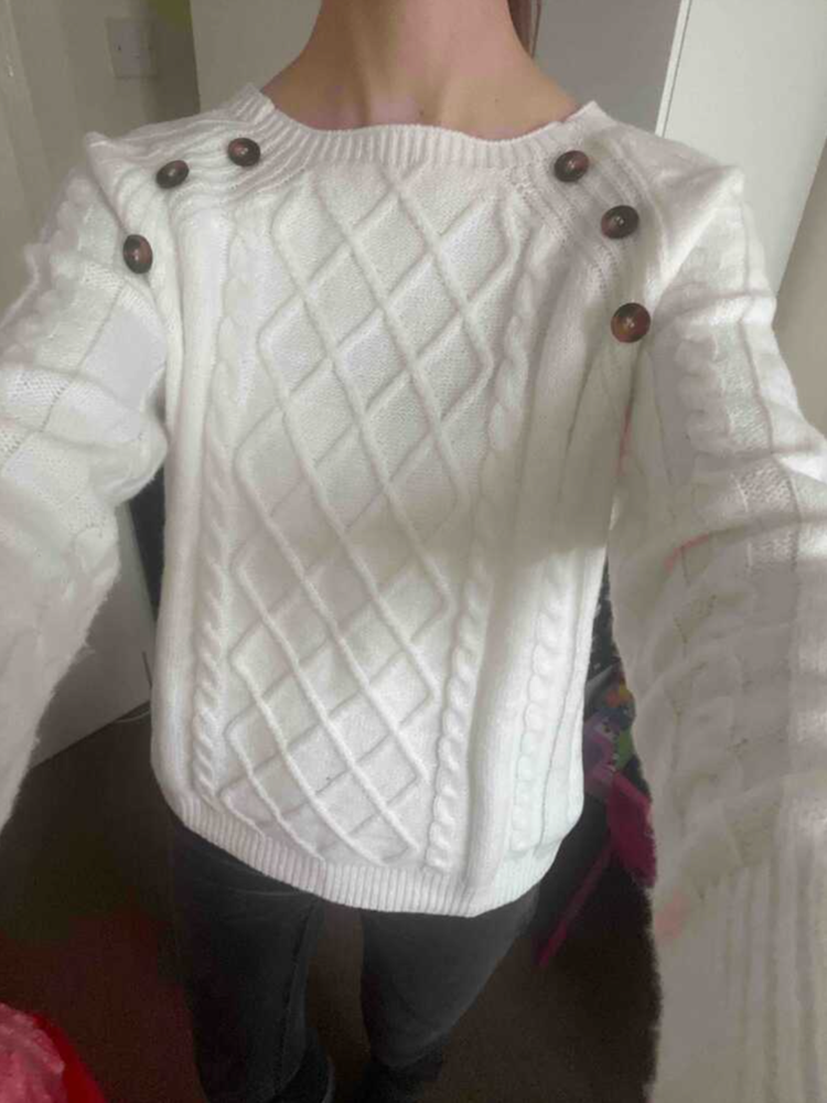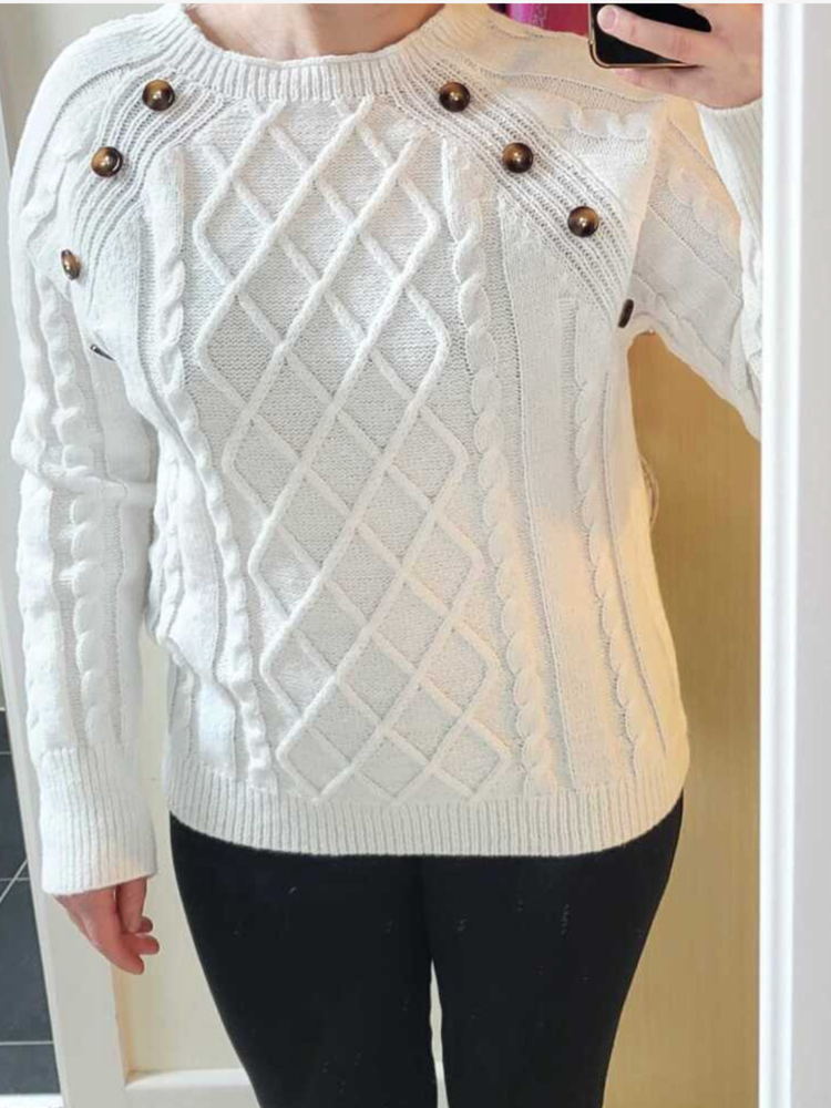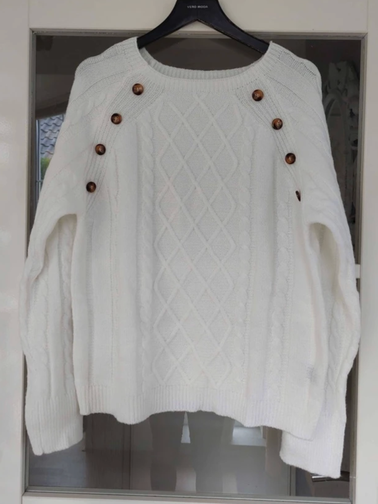 The Clara Button-Detail Cable Knit Jumper is the perfect blend of style and comfort for the colder months. With its classic cable knit design and refined button details along the shoulder, this jumper brings a touch of sophistication to your everyday wardrobe. Made from a soft, breathable knit, it keeps you warm while ensuring all-day comfort.