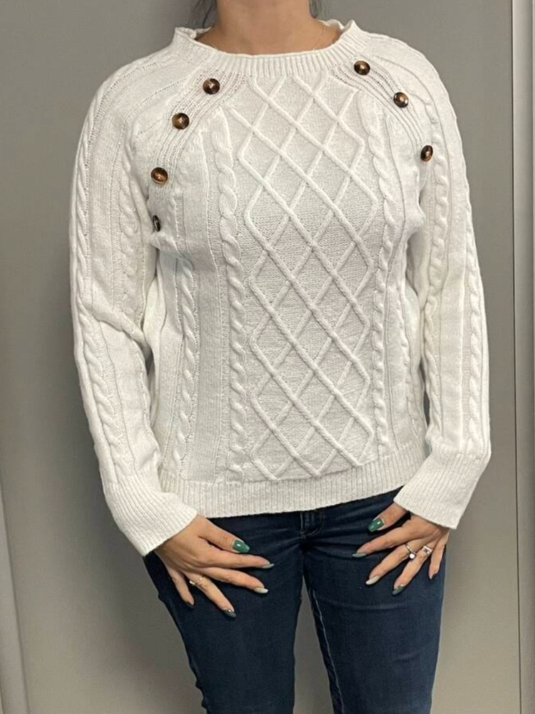 • Classic Design: Timeless cable knit pattern with elegant button accents.