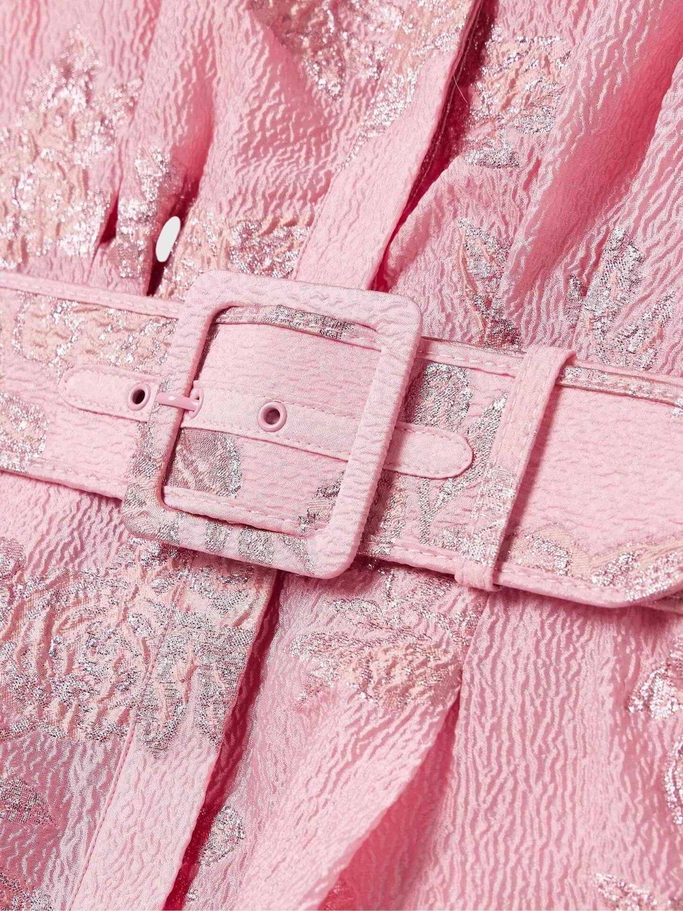 Designed to showcase a stunning floral motif in an elegant pink tone. This beautiful dress features a belted waist and short sleeves, combining classic charm with modern sophistication. Perfect for formal occasions, weddings, or upscale events, it pairs beautifully with heels and bold accessories to complete your look.