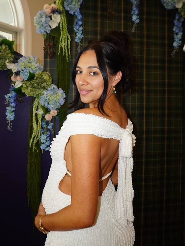 Open-back feature – Tied with a slim bow for subtle drama and adjustable support.
